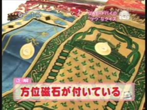 お祈り用の絨毯でメッカの方向を示す方位磁石がついている