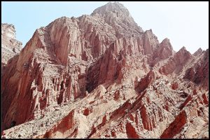 水や木々はない 赤茶げた岩山のトンネル 大迫力