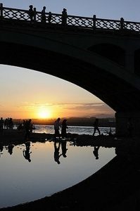 イリ河の夕日がきれい 冬は水が氷る 全長1500キロ