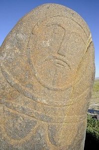 草原に高さ60×15メートルの石山 30~50センチの石が無数に積み重ねられている