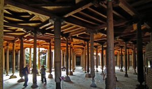 (ジュマモスク)多くの柱からなる建物 柱一本一本に彫刻が施されていて
