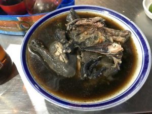 ラオカイ(雲南省 河口との国境)過去に中越戦争で破壊された町 フランス統治時代の教会 黒い服を着ているのはザオ族 アカガオ族の手作り醤油 草料理