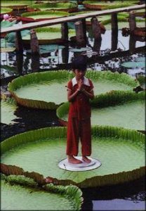 ホアタン村 寺院の池にある人が乗れるほど大きな蓮の葉 TL 853, Tân Phú Trung, tp. Sa Đéc 大オニバス 中南米原産の蓮