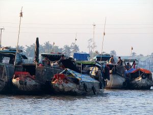 カントー 〇カイザン(カイラン)水上マーケット 一番規模が大きい 水上スタンドや船の上の売店がある 150そうの船