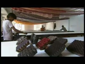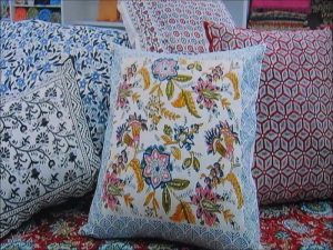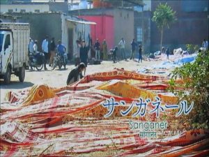 (伝統の布染め)サンガネールはハンコを使い布を染め上げる 木版を使った版画のような技法