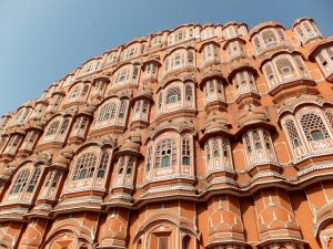 (風の宮殿 ハワー・マハル)白とピンクで出来た見事なお城 1799年 マハラジャの妻たちが町を眺めるために作った建物