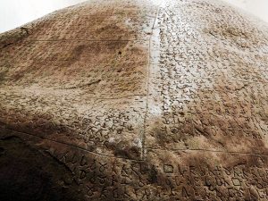 (パーリ語で刻まれた岩 ashokan rock edicts)ギルナール山へ向かう途中の白い建物の中にある