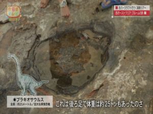 1億2千万年前に残されたブラキオサウルス(身長25メートル)の足跡