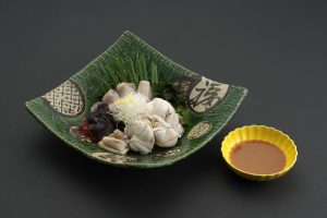 さわやかな酸っぱさとコリコリした歯ごたえがたまらないその料理は〃あんこうの共酢和え〃でした。