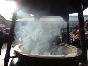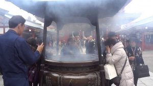 しかしここは日本そしてそこは浅草寺ちょうどいい塩梅(あんばい)の線香のたき方を知っているようでした。