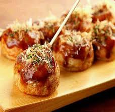 そんな中まん丸のツルツル頭にたっぷりのソースが〃べっとり〃とかかった〃たこ焼き〃が なんと串に刺されて売ってました。