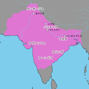 紀元前322年 アレクサンダー大王の死の翌年 インドではマガタ国の中に マウリヤ朝が成立する