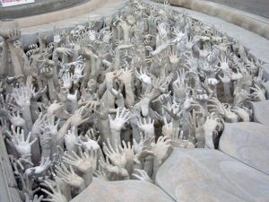 〇ワットロンクン 彫刻で出来た白い寺院 白亜の寺院 座禅を組む本物そっくりの蝋人形の僧侶