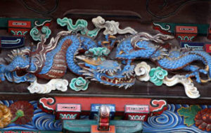 そして本殿の一番目立つところには立派な龍の彫刻が彫られてます。