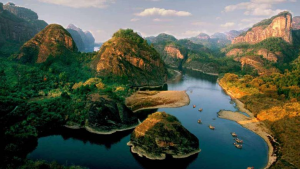 24位 武夷山(中国 福建)〇九曲渓川下り がけの上の棺 棺は船の形 ウーロン茶 大紅包 大紅包景区 武夷岩茶 端午節 ドラゴンボート (登山)840段の石段 天遊峰 大王峰 哂布岩哂 岩に赤い壁画 |