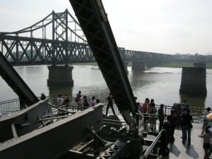 22位 丹東(中国 遼寧省)北朝鮮との国境の町 朝鮮戦争の時 アメリカ軍に破壊された国境の 橋 川の向こうに北朝鮮がある 北朝鮮グッツ |