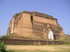 18世紀の遺跡 白亜のパゴダ 山のように大きな遺跡(仏塔のどだいぶ部のみ)