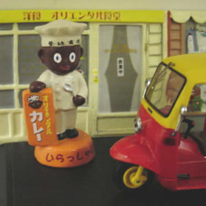 田舎のあざ道を走る宣伝カーは時には家の軒下を借りてショーとカレーの宣伝を行(おこな)って行ったそうです。