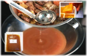 そのフォン・ド・ヴォーは子牛の骨やスジ肉を茶色く色が付くまで しっかり焼いてからダシを取る調理法です。