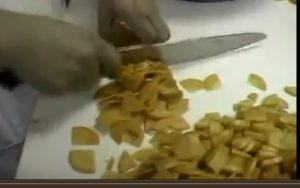 そして船内の調理場では やっとカレーに入れる野菜の切り込み作業が完了しました。量が量だけに3人がかりで30分以上もかかりました。