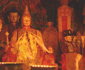 ポカラ内部 歴代ダライラマの黄金の銅像