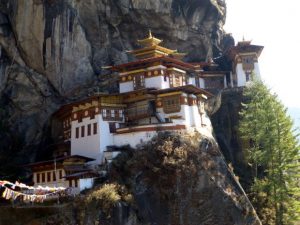 〇タクツァン僧院 垂直に切り立った岩山の中腹に建てられた寺院 別名 虎の隠れ家