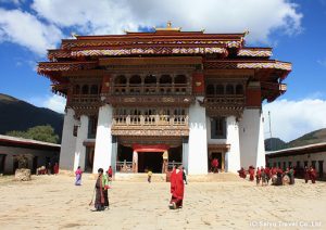 トンサ県(ティンプーから約200キロ)トンサゾン 初代ブータン国王が築いた寺(要塞) 東西2つの文化圏に分かれる 分岐点 ジャンパラカン(寺) 17世紀 初代国王が建てた寺 内部には黄金の仏像が安置