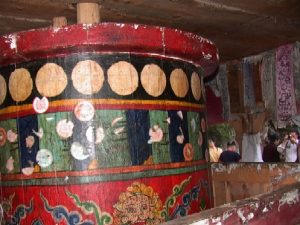 マニルン僧院 グルリンポジェの黄金像 小屋の中には水車式マニ車