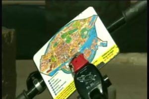 町にあるカラフルな自転車は誰が使っても無料 しかもハンドルのところには地図がついている(市内のみ)