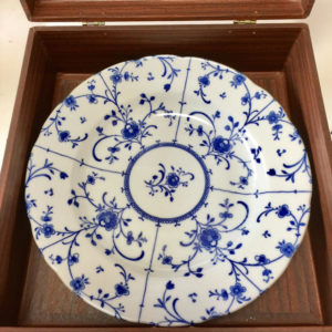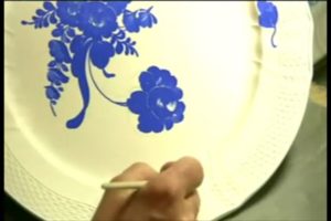 絵付けは女性が多い コペンハーデンブルーという青い顔料を使用