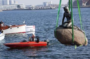 過去に人魚像は何度もペンキを塗られたり首をはねられたりのいたずらを受けている