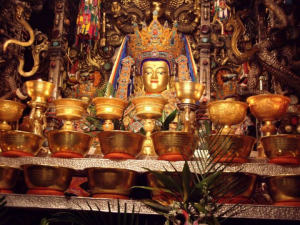 〇<ジョカン寺(チベット仏教発祥 最古の寺)>寺院内ではヤクの油でろうそくを燃やす ネパールから王妃が寺を混入 黄金の像が寺院内に展示されている