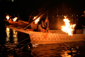 (岷江)遊覧船に乗って大仏を拝むこともできる 川では鵜飼も行われている 昔塩を船で運んでいた たびたび洪水に見舞われた