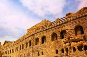 北庭故城 女性用の布靴 菩薩像や怪獣の置物などが出土 岸壁の模様のような岩の彫刻 岩を削って作られたもの