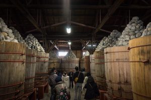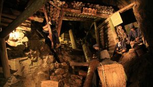 民家 築400年 3階建て 1階は家畜小屋 2階が居間と米倉 3階が仏間と客間 穀物倉庫 〇ドッツォ木で出来た焼き石風呂 どの家庭でも立派な仏壇がある
