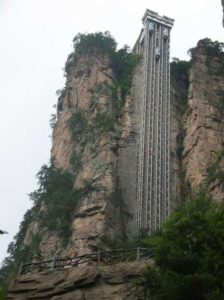 2002年 中国 湖南省 武陵源 百龍エレベーター(世界一高いエレベーター)は東京タワーと同じ高さを180秒で一気に登る  登山は4時間かかる