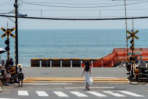 実はそこは江ノ電で一つだけ海が目の前に見える絶好の撮影場所でした。そして観光客は湘南の海をバックに元気に走る江ノ電(電車)を撮ろうとしていたのでした。