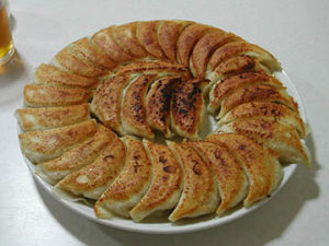 円盤ギョーザは福島の名物料理のひとつで店によっては巨大な円盤状の鉄鍋を使い一度の なんと千個分ものギョーザ焼き上げる事もあるそうです。