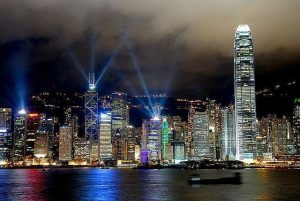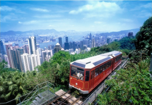 〇(ビクトリアピーク)香港島 高台からの夜景 1888年 373メートルの頂上まで7分で到達するトラムが完成 以前は山道を3時間かけて登っていた