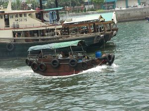 (19世紀)船上生活 今も残る昔の家船 今は市場の事務所として使われている 香港の海鮮料理の歴史は香港仔から始まった