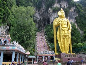 洞窟の手前には高さ42.7メートルムルガ神(戦いの神)の黄金の像が天高くたってます。