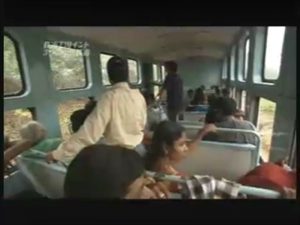 扇風機の車両では天井に30~40機の扇風機が取り付けられフル稼働している