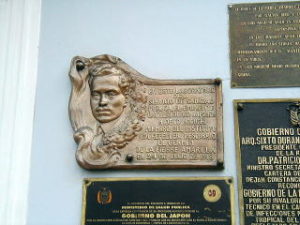 エクアドルの国立熱帯医学衛生研究所の壁に掲げられた英世の銅板