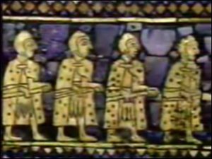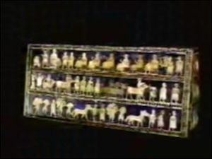 見事な装飾がされた箱にはシュメール王と その軍隊が戦をしている様子が描かれている 箱には貝殻やアフガニスタン産のラピスラズリがちりばめられている