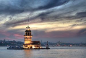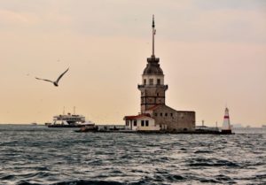 かつてはボスポラス海峡に建つ灯台として使われていた 今は人気のレストランとなっている