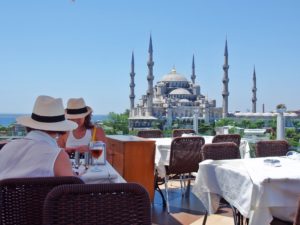 アヤソフィアとブルーモスクが望める屋外レストラン