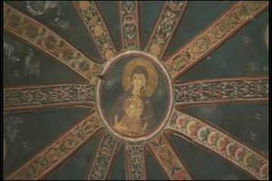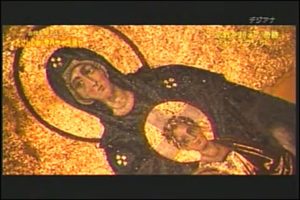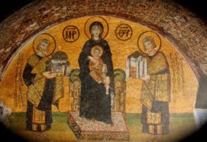 キリストを抱く聖母マリアの右側にはコンスタンチンノーブル(イスタンブール)の町を築いたビザンチン皇帝が描かれている