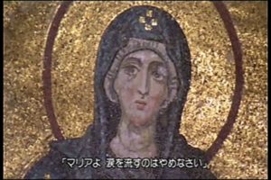 聖母マリアの左側にはアヤソフィアを築いた湯捨てアヌスの絵が描かれている