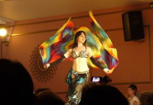展望台の下ではベリーダンスもみられる 上映終了時間が近づくと上級者のダンサーが登場する。