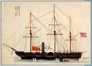 1863年 長州 下関 久坂玄随(くさかげんずい)らがアメリカ商船に向け大砲を放った